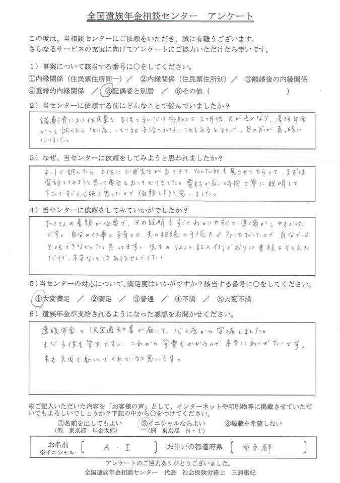 A・I様(東京都)配偶者と別居2026:03:06:15:59:48