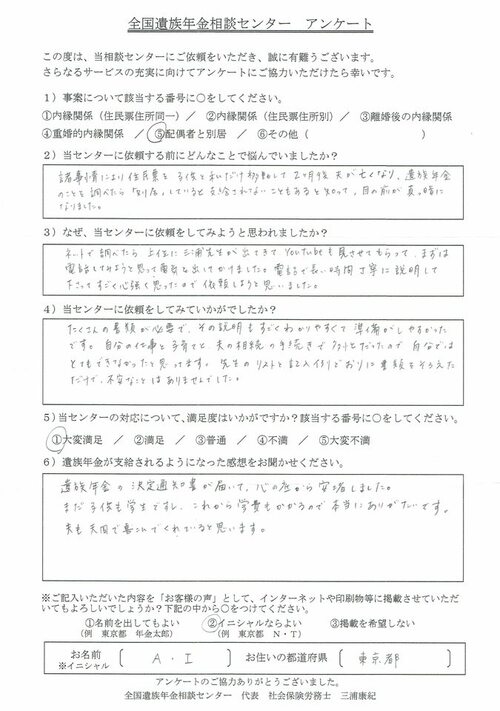 又、今回三浦先生のお力をお借りし、遺族年金を受給できたことを、心より感謝しております。
